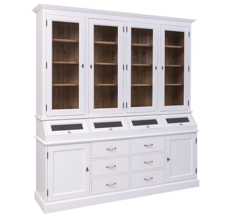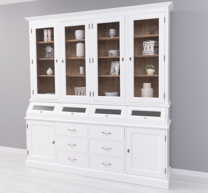 Large sideboard with 2 doors, 6 drawers, 4 compartments with BAS glass door + 4 SUP glass doors
