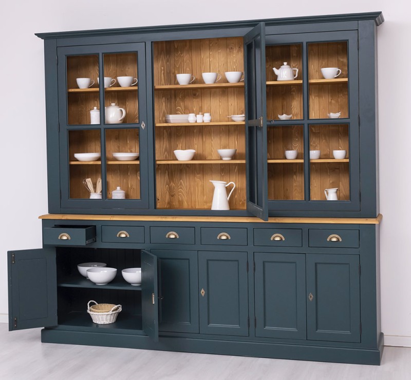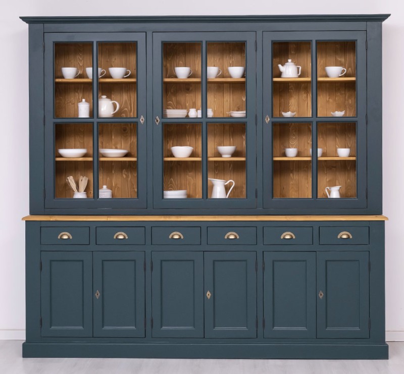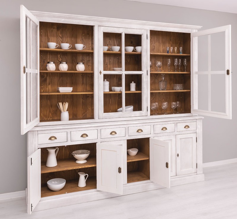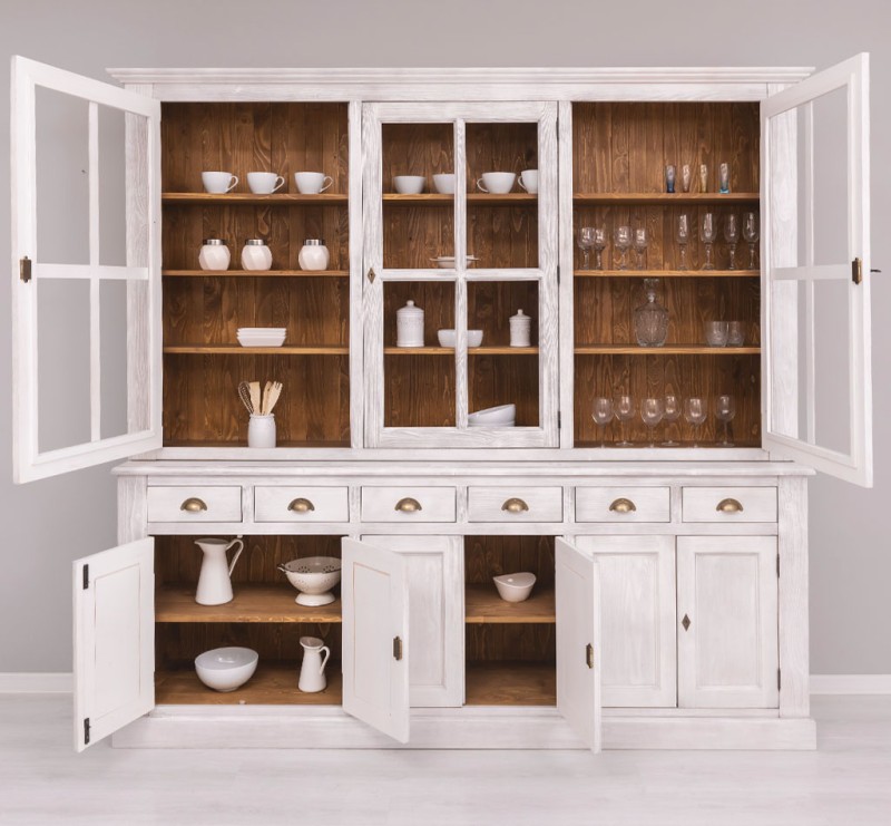 The product is part of the Kitchen Cabinets category and is made in Romania from 100% solid pine wood. The display case offers plenty of presentation space at the upper part behind three large glass doors, as well as generous storage space at the bottom part. The product is delivered mounted in two separate packages that only need to be placed on top of each other, and the very solid construction allows use for a very long time. They will thank you for their excellent quality and impressive design. Maintenance: It can be cleaned of dust and dirt with a slightly damp cloth. About the proper maintenance and use of the furniture, you can read more on the site, in the INFORMATION / Instructions for use section.