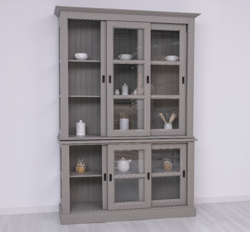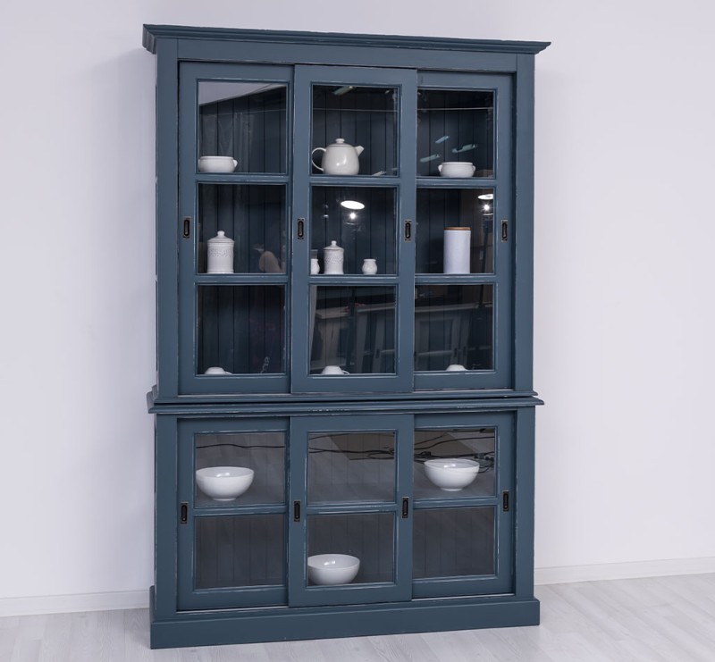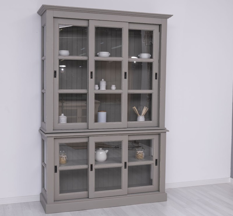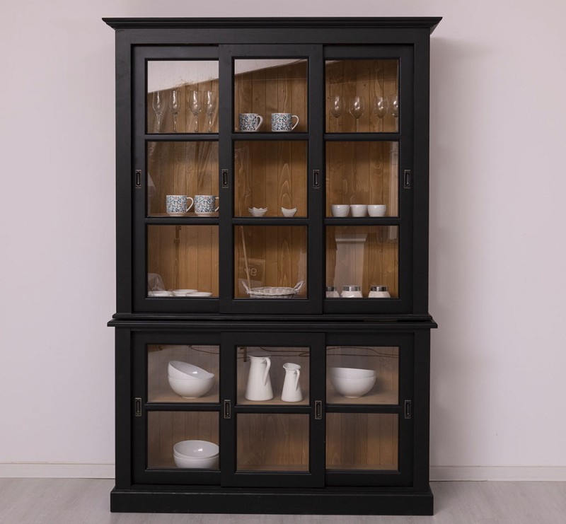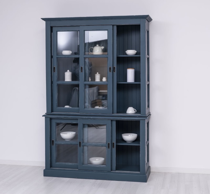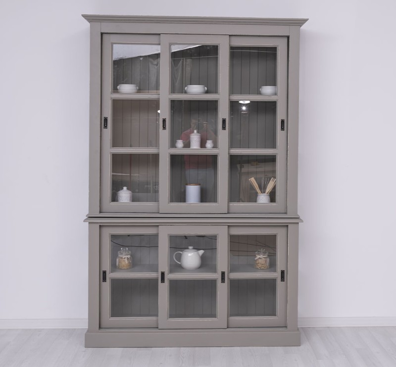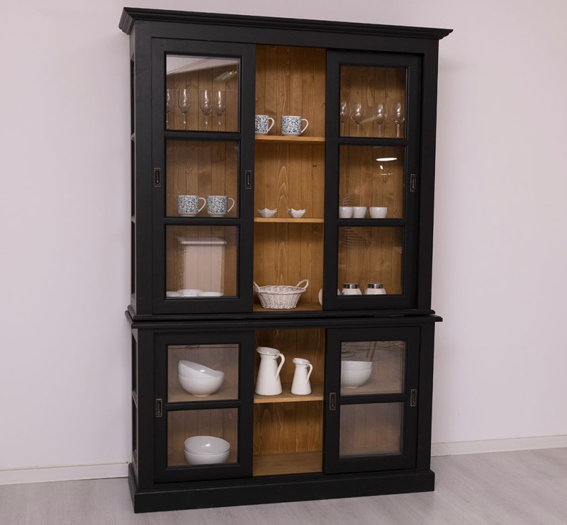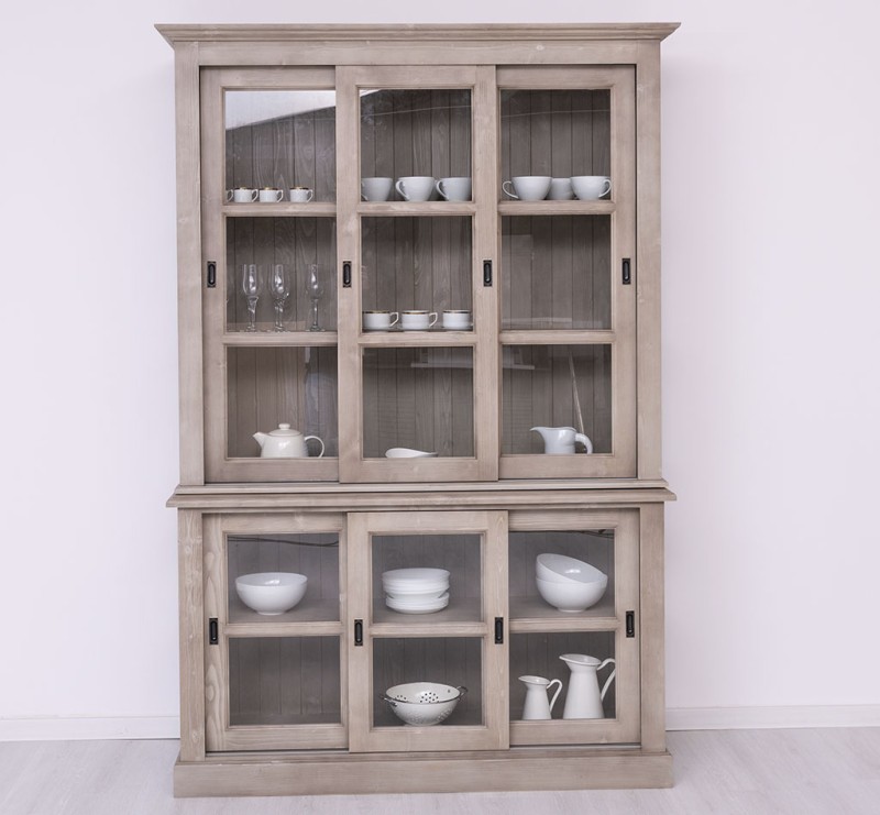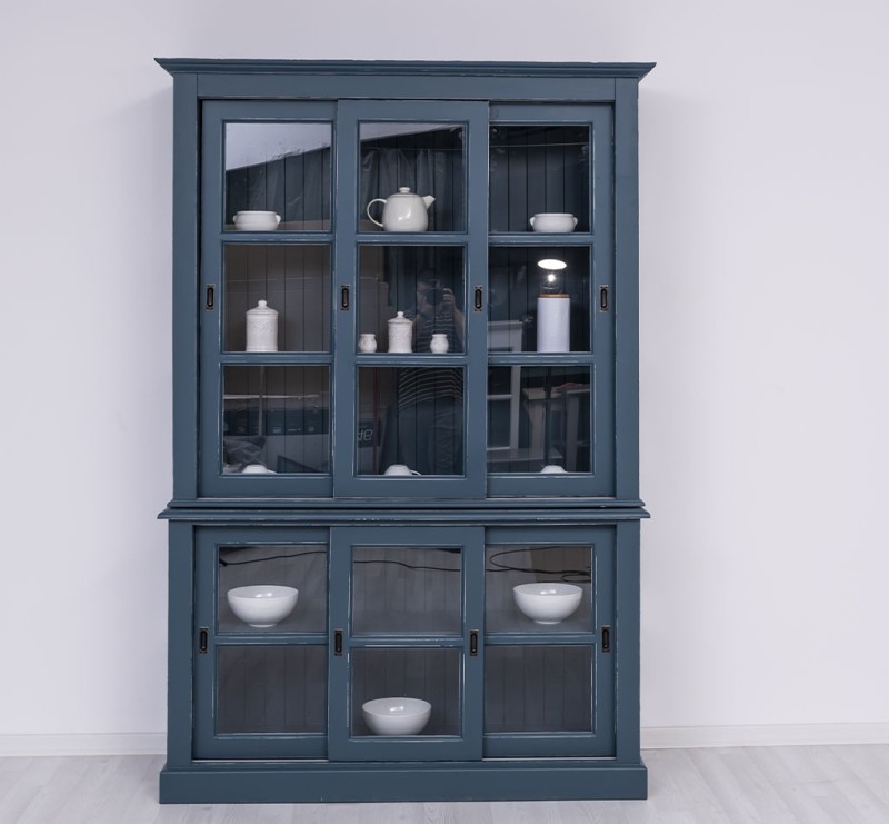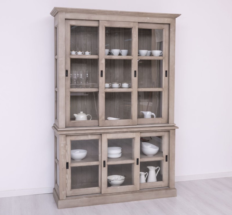 The product is part of the Kitchen Cabinets category and is made in Romania from 100% solid pine wood. The display case offers plenty of presentation space at the upper part behind three sliding glass doors, as well as other generous display spaces at the bottom part behind three small sliding glass doors. The sides of this product are made of solid wood frames with glass, the presentation surface being thus further enlarged. The product is delivered mounted in two separate packages that only need to be placed on top of each other, and the very solid construction allows use for a very long time. They will thank you for their excellent quality and impressive design. Maintenance: It can be cleaned of dust and dirt with a slightly damp cloth. About the proper maintenance and use of the furniture, you can read more on the site, in the INFORMATION / Instructions for use section.