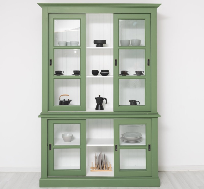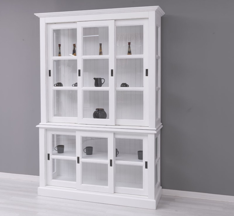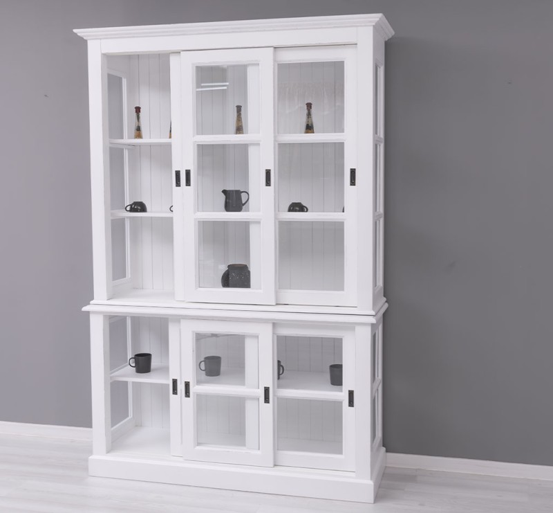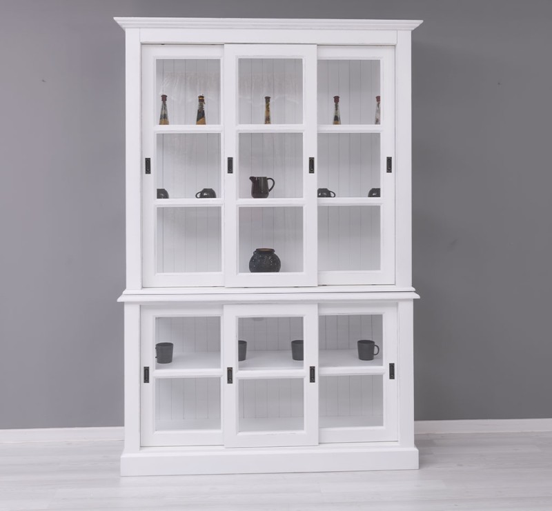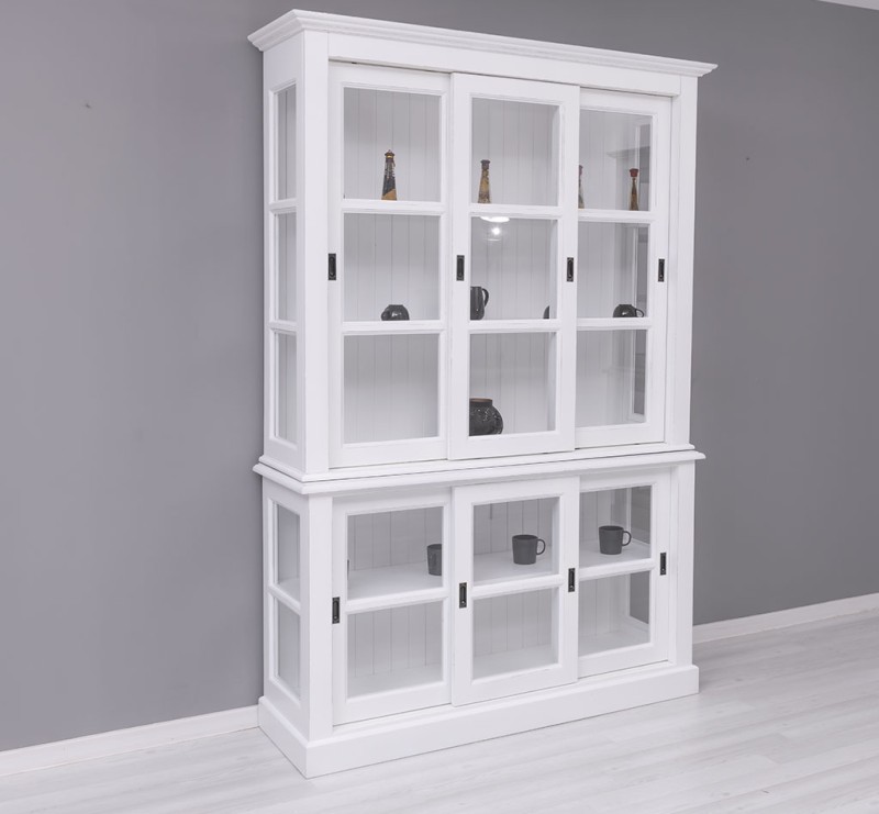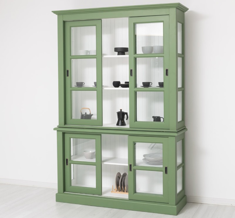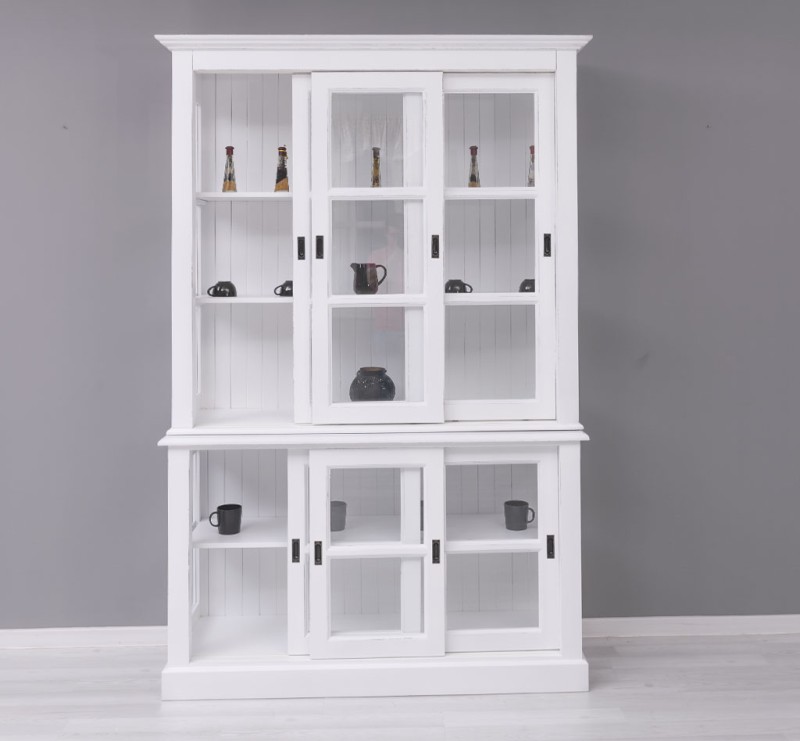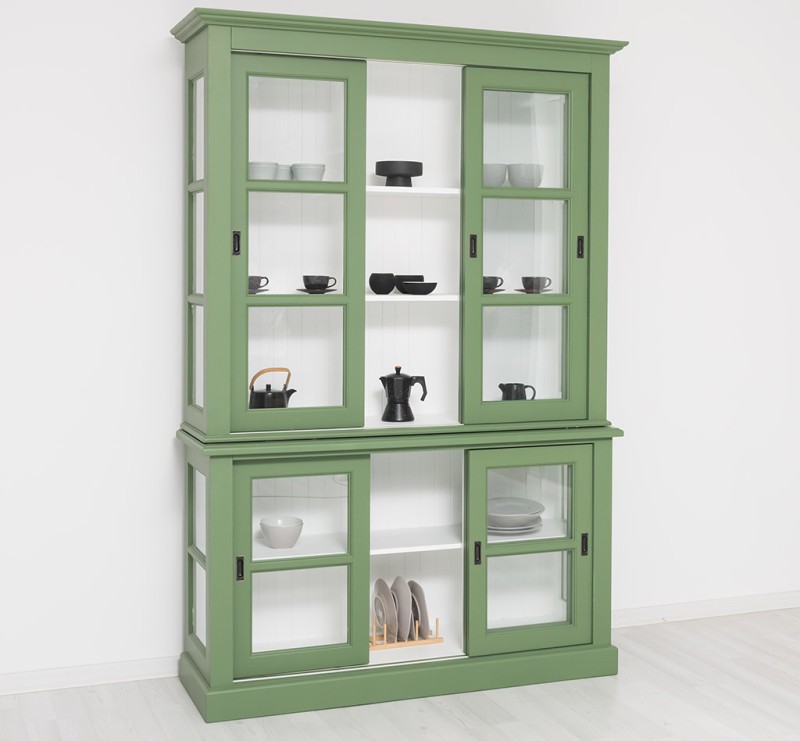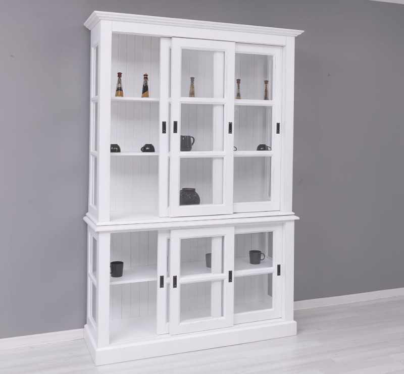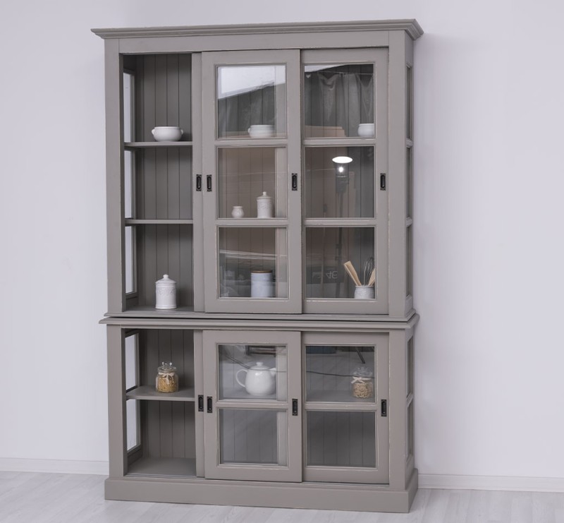The product is part of the Kitchen Cabinets category and is made in Romania from 100% solid pine wood. The display case offers plenty of presentation space at the upper part behind three sliding glass doors, as well as other generous display spaces at the bottom part behind three small sliding glass doors. The sides of this product are made of solid wood frames with glass, the presentation surface being thus further enlarged. The product is delivered mounted in two separate packages that only need to be placed on top of each other, and the very solid construction allows use for a very long time. They will thank you for their excellent quality and impressive design. Maintenance: It can be cleaned of dust and dirt with a slightly damp cloth. About the proper maintenance and use of the furniture, you can read more on the site, in the INFORMATION / Instructions for use section.