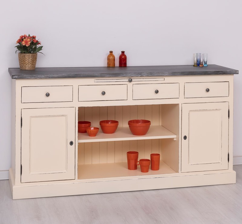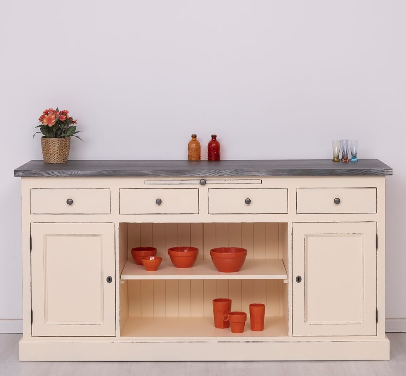 The product is part of the Kitchen Cabinets category and is made in Romania from 100% solid pine wood. The product is delivered assembled, and the very solid construction allows use for a very long time. This product is very practical and offers generous storage space but also a central presentation space open with shelf. They will thank you for their excellent quality and impressive design. Maintenance: It can be cleaned of dust and dirt with a slightly damp cloth. About the proper maintenance and use of the furniture, you can read more on the site, in the INFORMATION / Instructions for use section.
