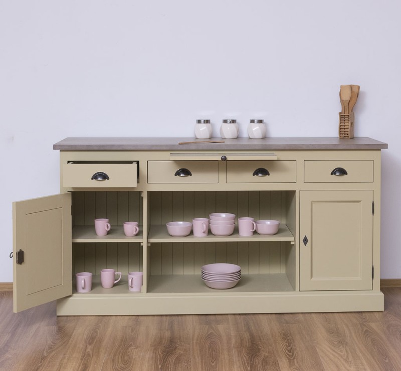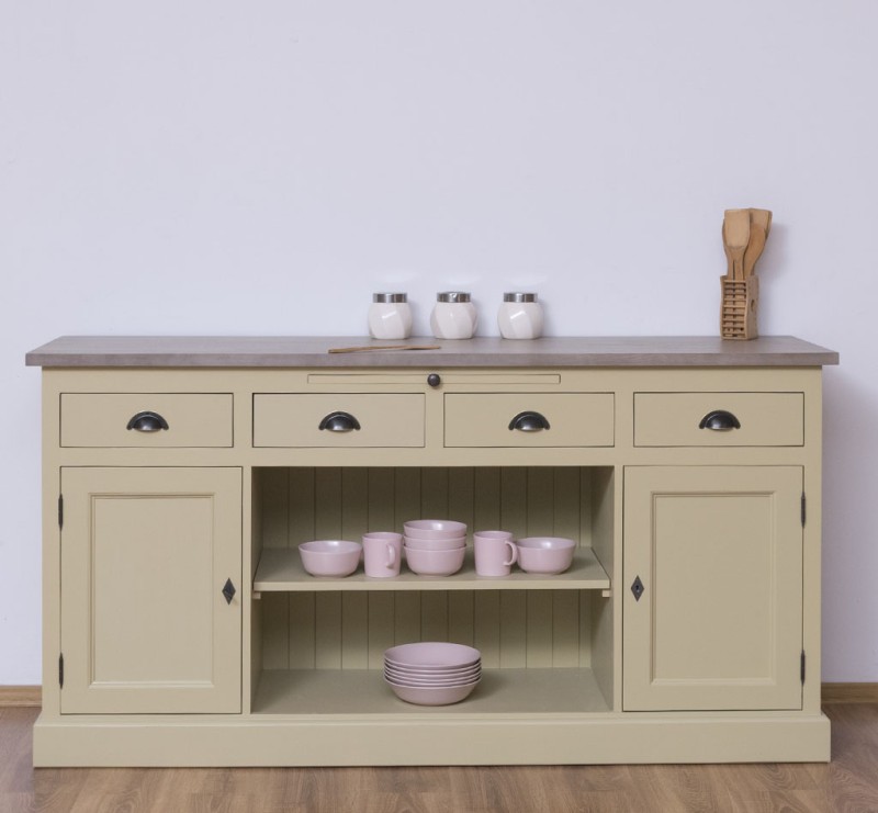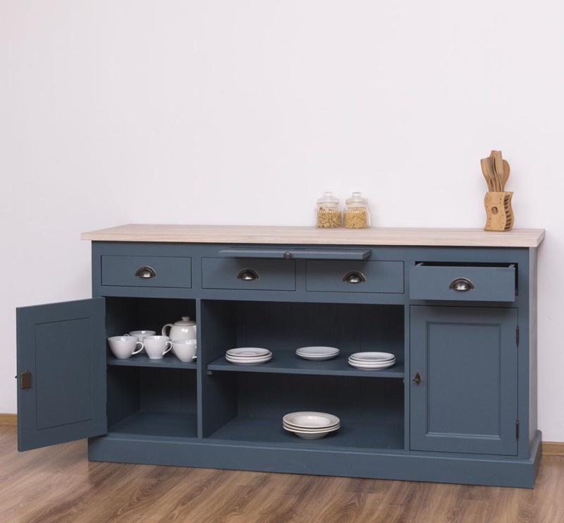 The product is part of the Kitchen Cabinets category and is manufactured in Romania. The body of the product is made of 100% solid pine wood and the top is made of 100% solid oak wood. The product is delivered assembled, and the very solid construction allows use for a very long time. This product is very practical and offers generous storage space but also a central presentation space open with shelf. They will thank you for their excellent quality and impressive design. Maintenance: It can be cleaned of dust and dirt with a slightly damp cloth. About the proper maintenance and use of the furniture, you can read more on the site, in the INFORMATION / Instructions for use section.