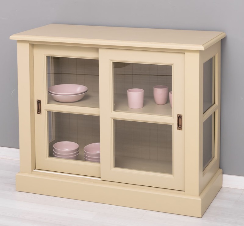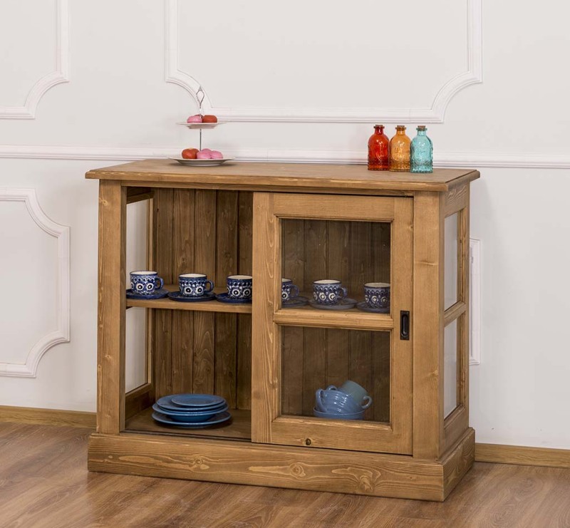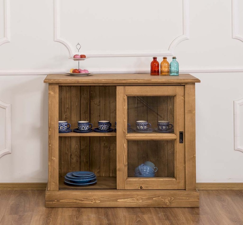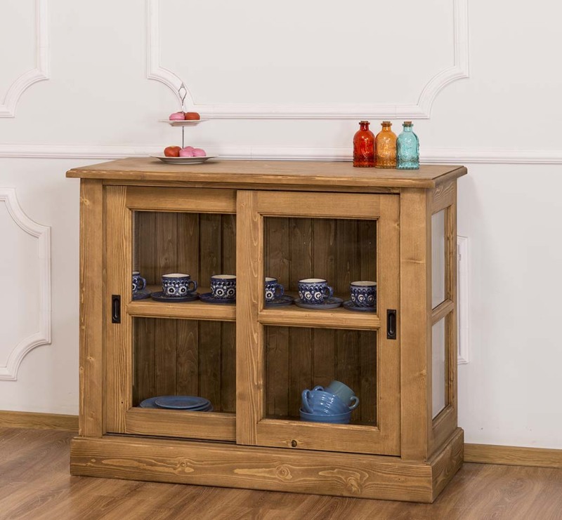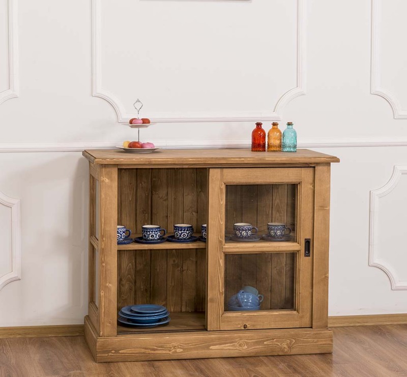 The product is part of the Kitchen Cabinets category and is made in Romania from 100% solid pine wood. The product is delivered assembled, and the very solid construction allows use for a very long time. The display case offers presentation space behind two sliding glass doors. They will thank you for their excellent quality and pleasant design. Maintenance: It can be cleaned of dust and dirt with a slightly damp cloth. About the proper maintenance and use of the furniture, you can read more on the site, in the INFORMATION / Instructions for use section.