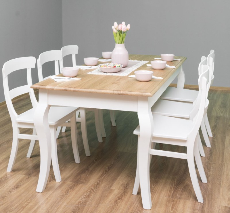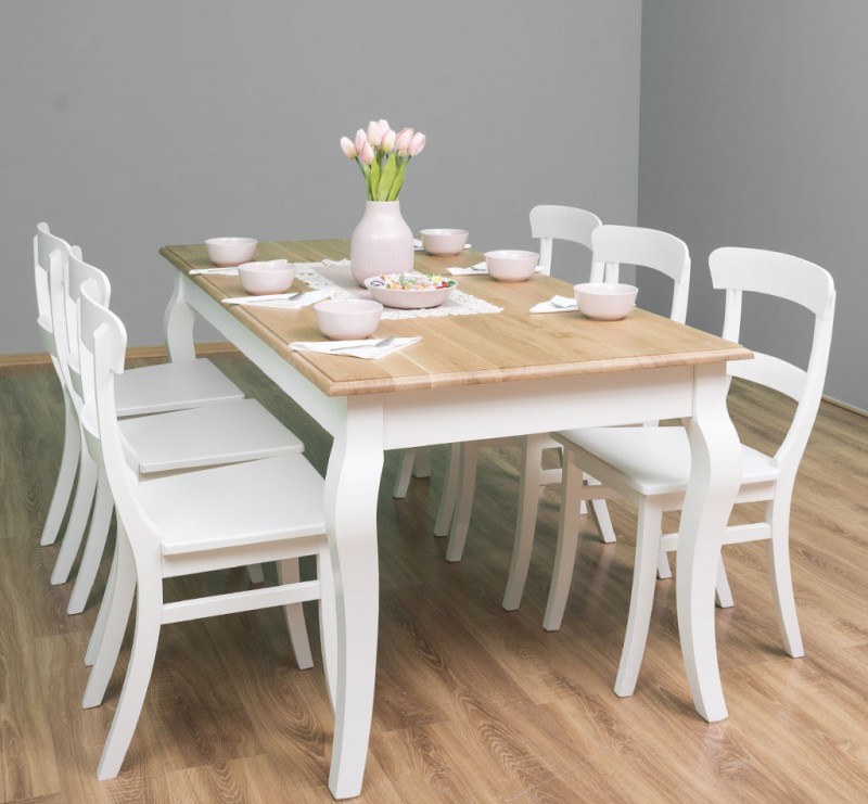 The product belongs to the category Tables and chairs and is manufactured in Romania. The body of the product is made of 100% solid pine wood and the top of 100% solid oak wood. The product is delivered with the legs disassembled but packed in the same package, with all the accessories necessary for easy installation, and the very solid construction allows use for a very long time. They will thank you for their excellent quality and special and elegant appearance. Both functionality and design must play an important role in furnishing a house, and with these dining tables with curved legs you can inspire a classic elegance of the living room or kitchen. With these products, meals with family or friends will become unique experiences. Maintenance: It can be cleaned of dust and dirt with a slightly damp cloth. About the proper maintenance and use of the furniture, you can read more on the site, in the INFORMATION / Instructions for use section.