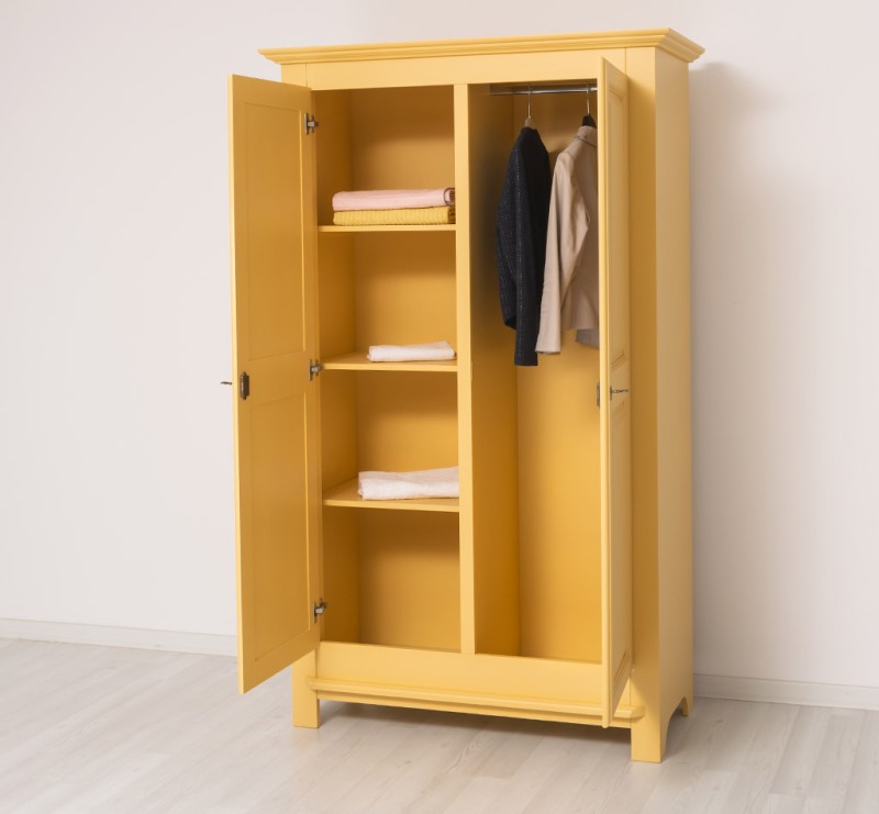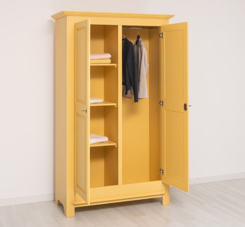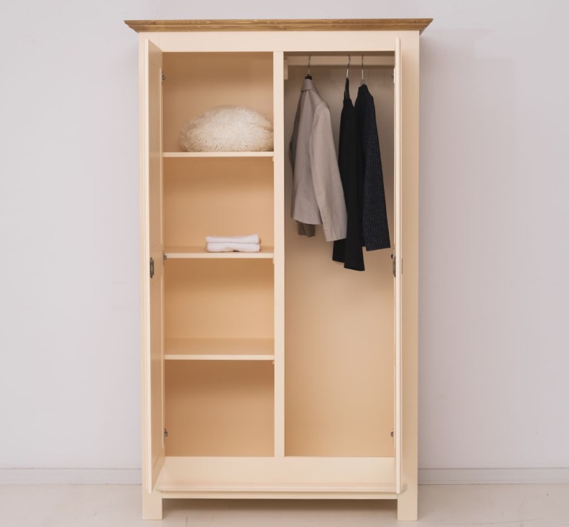 The product is part of the Wardrobes category and is made in Romania from 100% solid pine wood. The product is delivered assembled and the very solid construction allows use for a very long time. The most important requirement for a wardrobe is to have enough storage space. In these practical and elegant solid wood wardrobes, all clothes will find their rightful place. The interior is divided into two uniform parts, on the left side are placed 3 fixed shelves and on the right side is the hanger bar. Both the shelves and the hanger bar are included in the price. They will thank you for their excellent quality and special design! Maintenance: It can be cleaned of dust and dirt with a slightly damp cloth. About the proper maintenance and use of the furniture, you can read more on the site, in the INFORMATION / Instructions for use section.